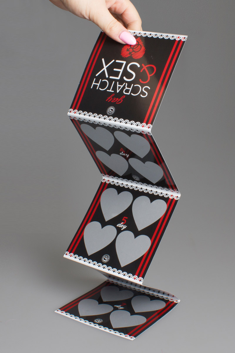 Avec le jeu à gratter Scratch & Sex, la marque Secret Play propose un grand classique des jeux coquins à deux : il suffit de gratter une ou plusieurs cases de la carte chaque jour et de réaliser la position demandée avec sa ou son partenaire.