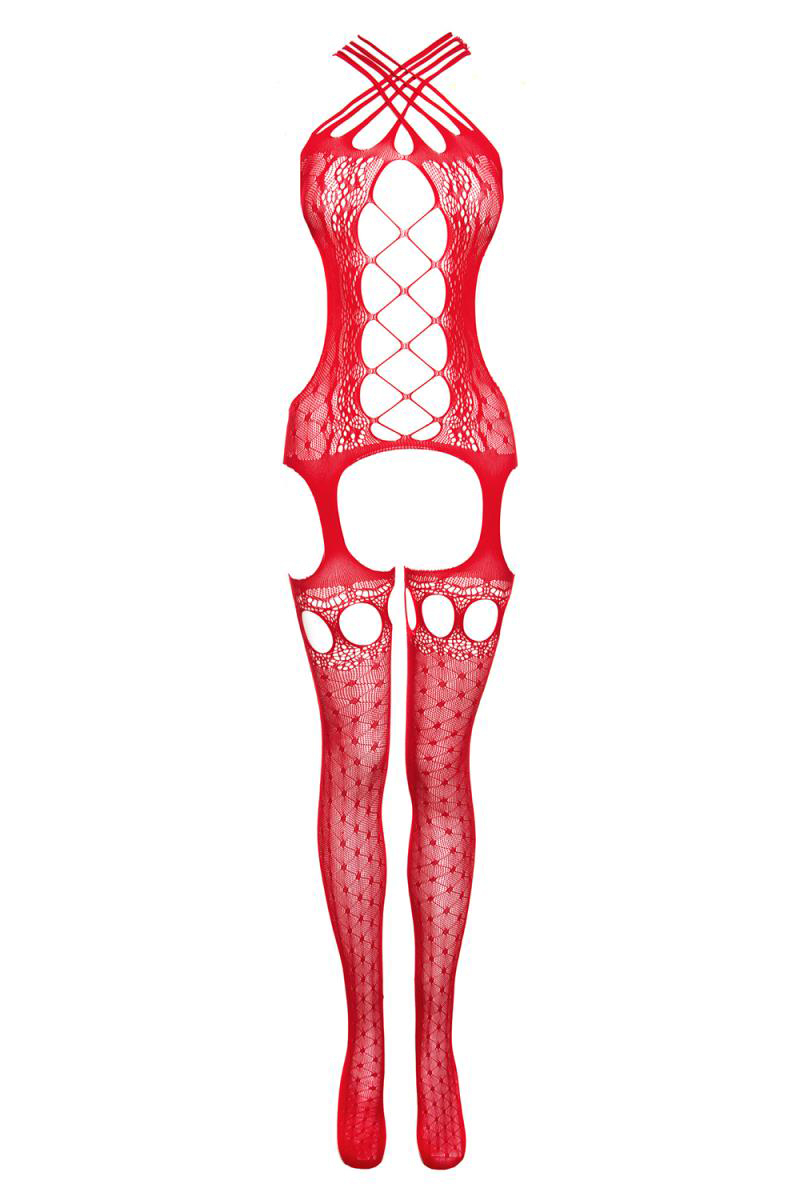 La combinaison Jasmina de la marque Christine, est une combinaison à avec effet porte-jarretelles, très sexy, ouverte à l'entrejambe.