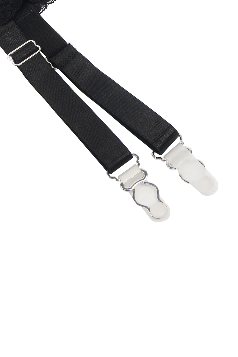 Doté de quatre jarretelles élastiques, ce porte-jarretelles structure la silhouette avec élégance. Le string assorti complète parfaitement l'ensemble pour un look harmonieux et irrésistible.