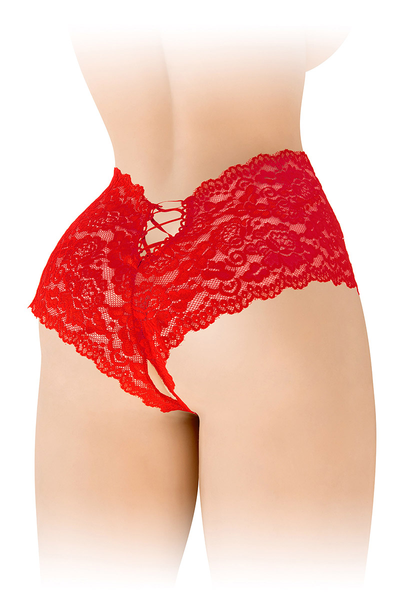 Joli boxer en dentelle ouvert sur le devant et le derrière. Laçage raffiné à l'arrière.