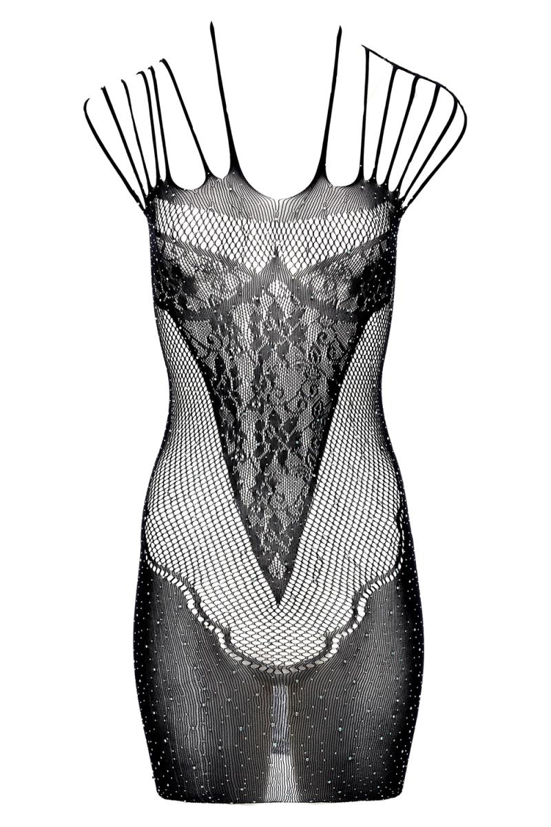 La marque de lingerie sexy Christine présente la robe Riana, une robe sexy semi transparente en mailles super élastiques, ornée de strass sur le devant.