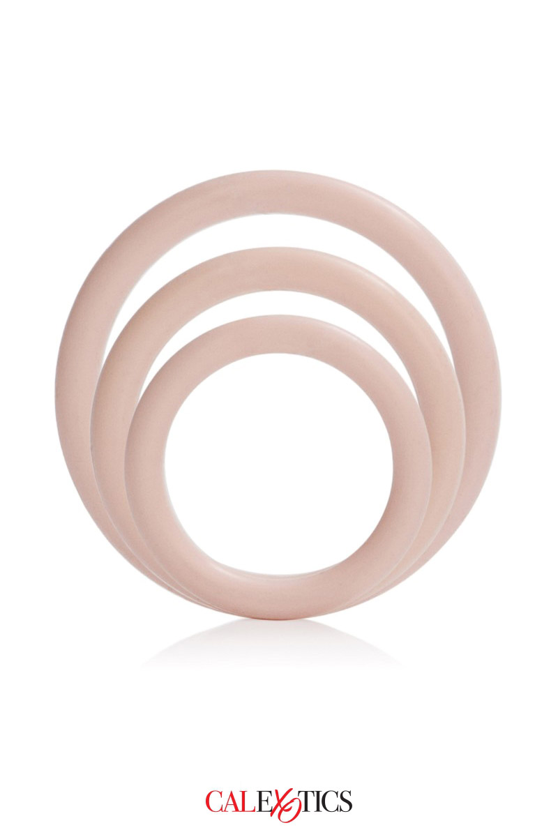 Pack de 3 solides anneaux en silicone haute qualité pour serrer la verge et/ ou les testicules et vous aider à conserver une érection vigoureuse le plus longtemps possible.