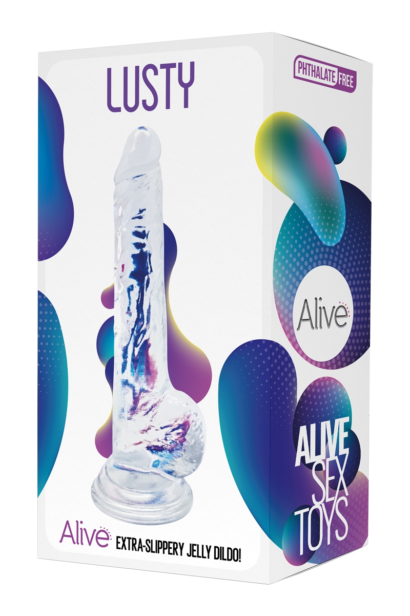 Le gode ventouse Jelly Lusty de la marque Alive, bénéficie d'une matière en Jelly extra-glissante et très souple, une forme droite, des testicules apparentes, une surface lisse et des dimensions idéales pour satisfaire toutes les envies.