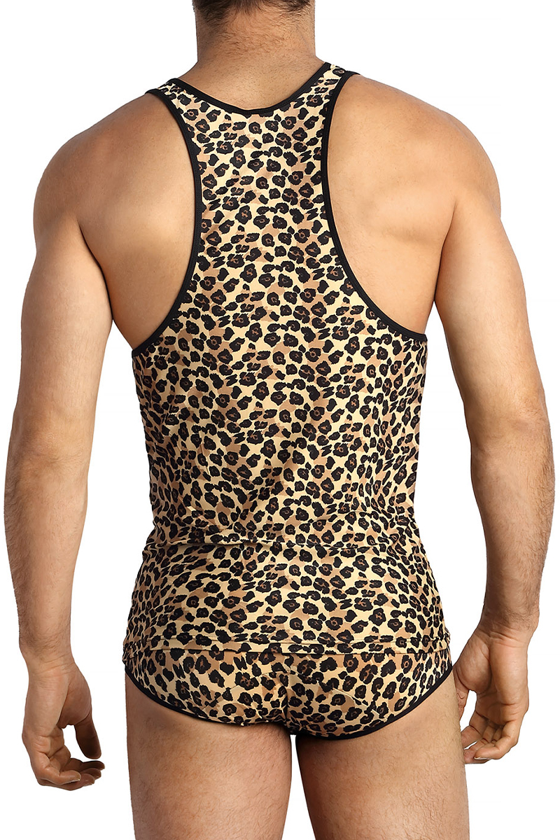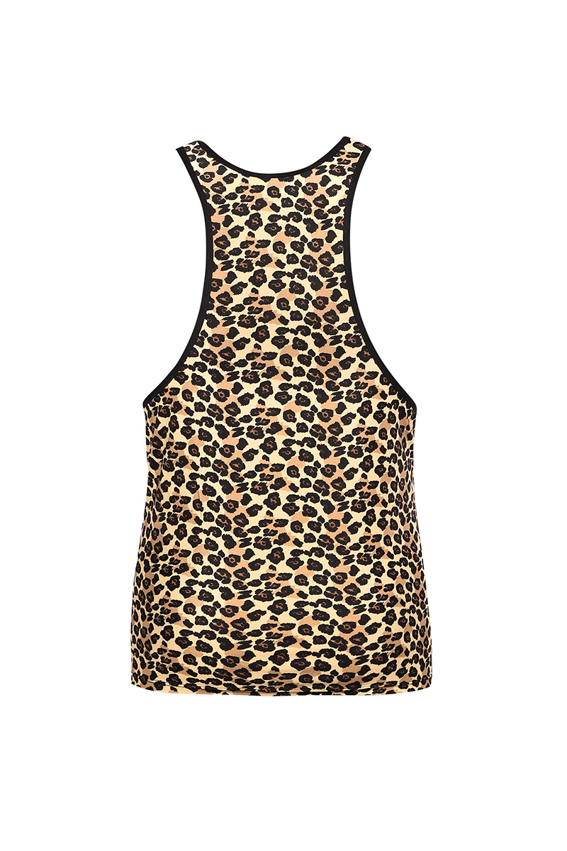 Le débardeur Mercury. La coupe ultra sexy de ce débardeur est accentuée par des galons noirs au niveau des épaules. Ce débardeur sexy est fabriqué en Tissu doux imprimé de motifs inspiration léopard.