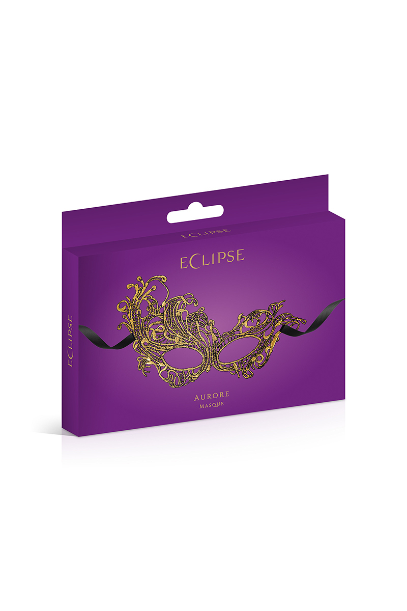 Loup souple en dentelle brodée, couleur dorée, de haute qualité et forme asymétrique, pour accompagner vos tenues coquines ou vos déguisements sexy.