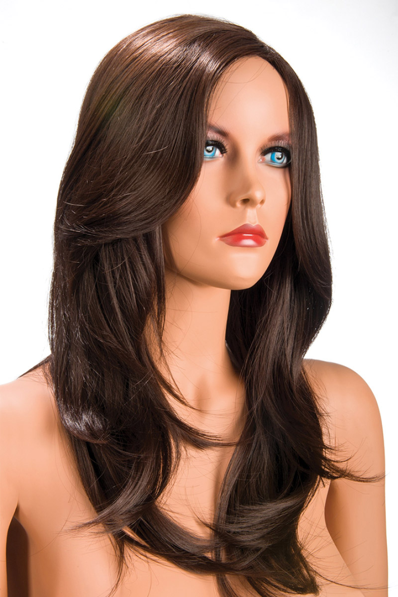 Perruque longue dont les mèches tailles en dégradé encadrent parfaitement le visage.