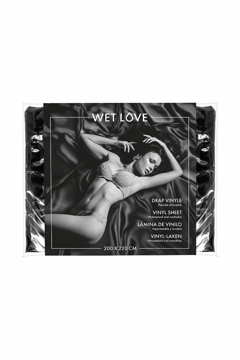 Drap en vinyle grand format (220 x 200 cm) noir de la marque Fetish Tentation, pour protéger le lit, le sol et le mobilier en cas de jeux salissants.