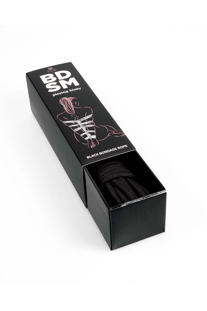 La marque Secret Play propose cette corde noire de 10 mètres de long dédiée aux jeux de bondage.