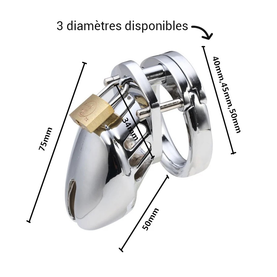 Cage de chasteté SM de qualité supérieure en acier inoxydable poli à la main, un alliage durable et résistant à la corrosion et le ternissement causé par une utilisation quotidienne. Equipée d'un cadenas à clé.