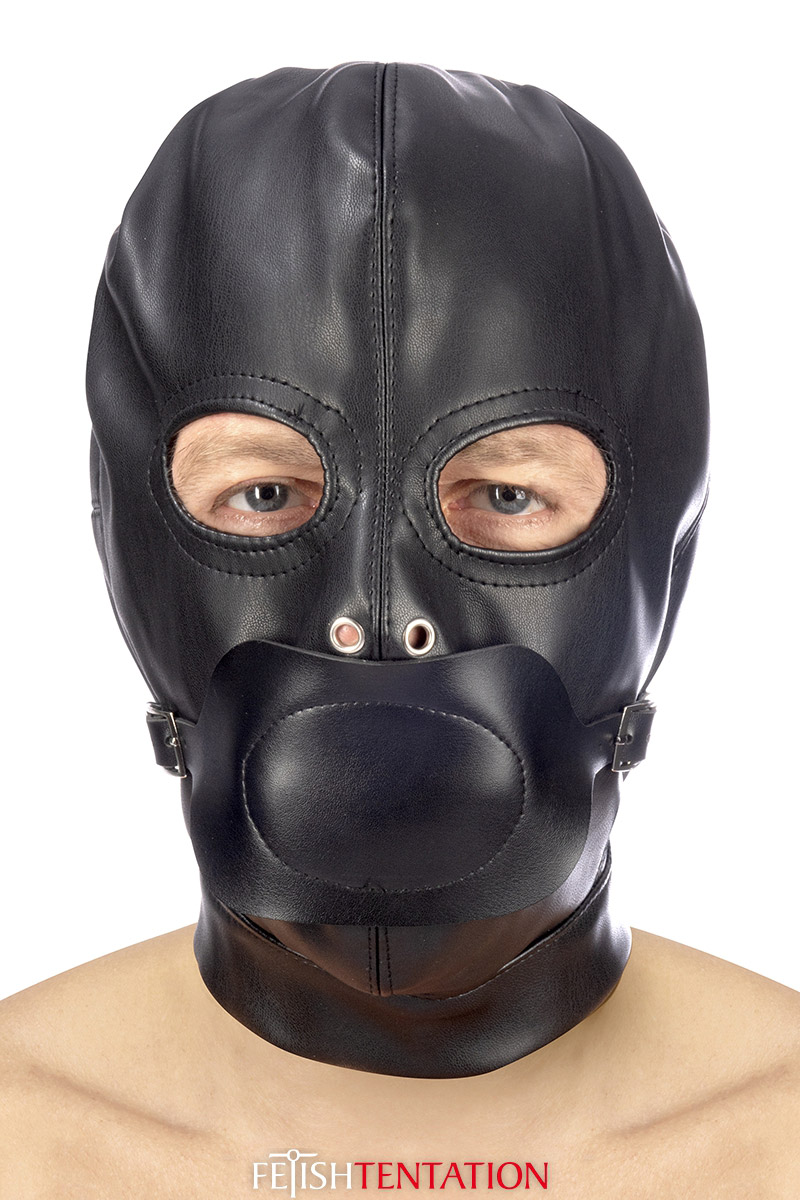 - Cagoule BDSM avec ouverture pour les yeux et bâillon amovible