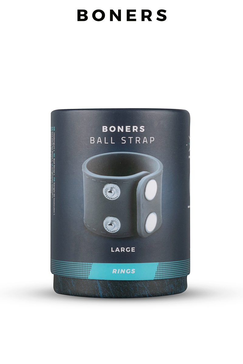 Anneau de pénis et extenseur de bourses Ball-strap large, réglable en silicone de la marque Boners, 2 tailles disponibles.