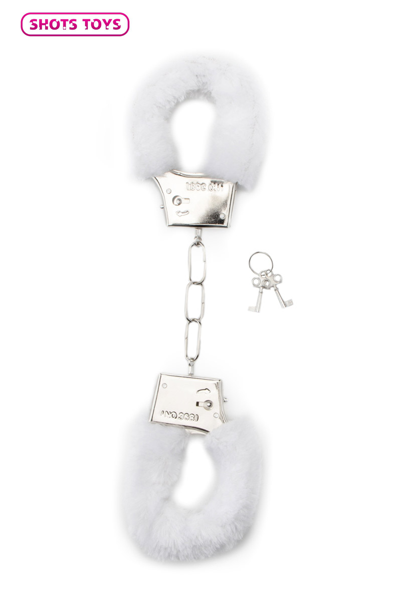 Menottes fantaisie premier prix de la marque Shots Toys, en métal et fausse fourrure blanche, avec fermeture à clé + 2 clés fournies.