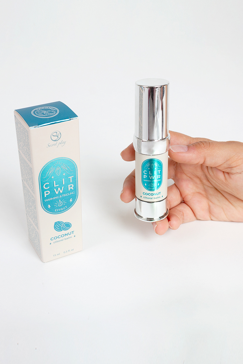 La marque Secret Play propose Clit Pwr noix de coco, un baume pour le clitoris avec effets vibrant et chauffant et booster de plaisir au parfum de noix de coco.