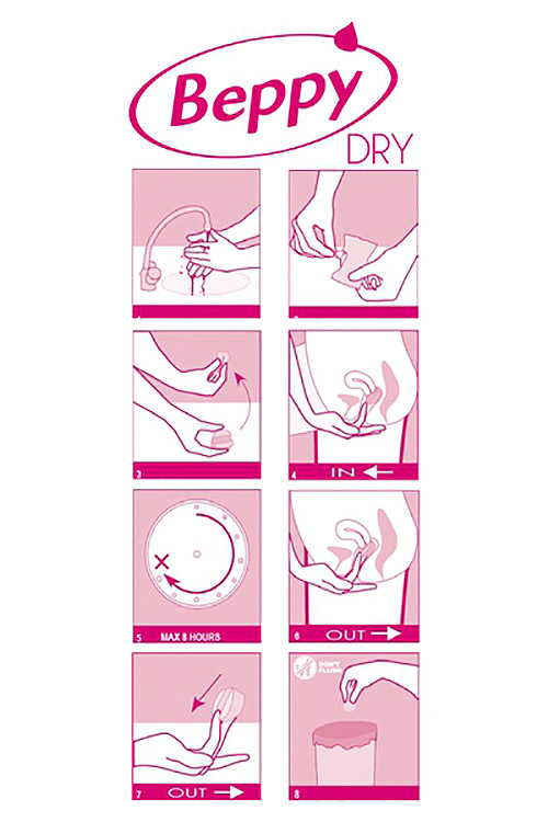 Le tampon Beppy en version Dry n'est pas humecté d'une émulsion de lactagel et est destiné aux utilisatrices expérimentées.