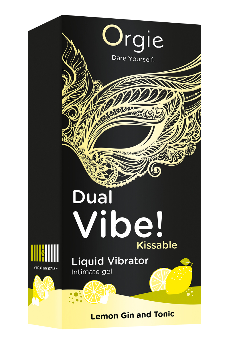 Dual Vibe Lemon Gin And Tonic Liquid Vibrator de la marque Orgie est un gel intime d'excitation / stimulant embrassable (parfum gin tonic au citron) avec effets de vibrations et de picotements pour homme, femme et couple.
