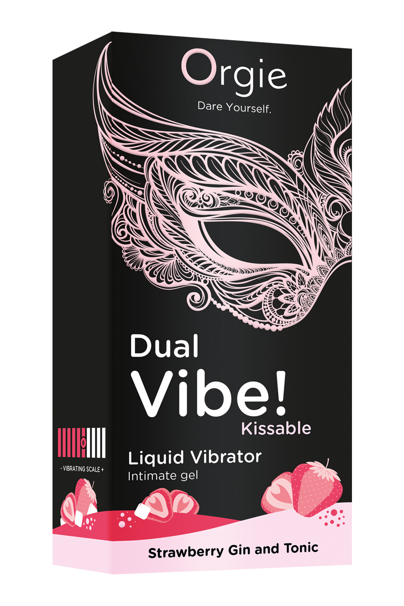 Dual Vibe Strawberry Gin And Tonic Liquid Vibrator de la marque Orgie est un gel intime d'excitation / stimulant embrassable (parfum gin tonic à la fraise) avec effets de vibrations et de picotements pour homme, femme et couple.