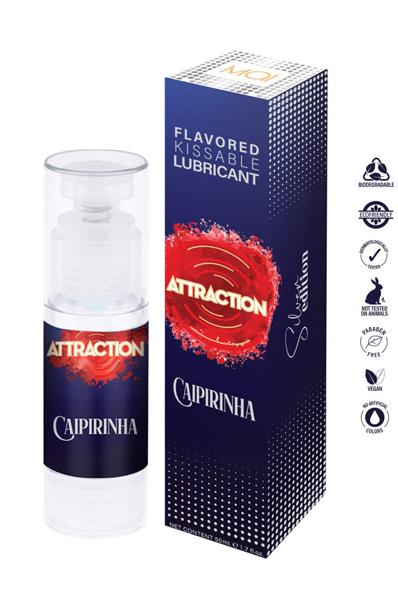 La marque Attraction présente le lubrifiant à base d'eau, embrassable et parfumé au Mojito, Flavored Kissable Lubricant Caipirinha.