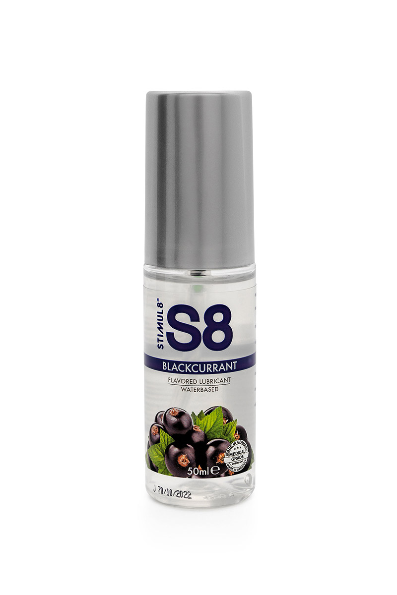 La marque Stimul8 (S8) présente S8 Water Based Blackcurrant Flavored Lube, un lubrifiant intime de qualité médicale à base d'eau, glissant et longue durée, embrassable et aromatisé au cassis.