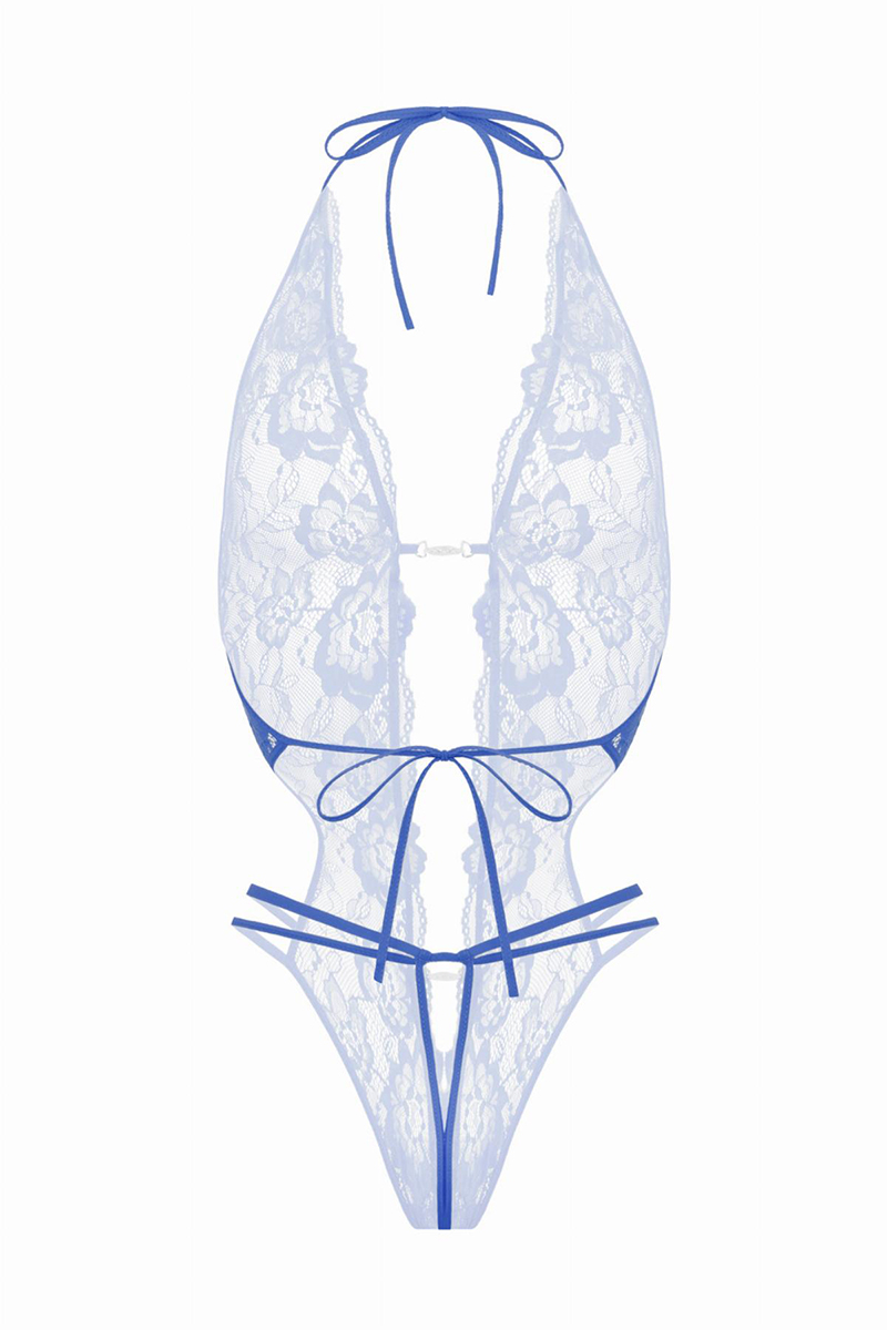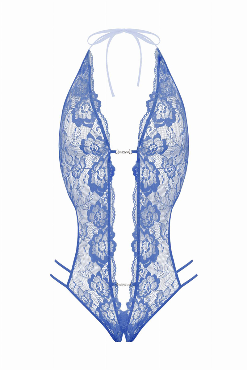 Renée (modèle bleu) by Christine est un body en dentelle ouvert à l'entrejambe particulièrement excitant.