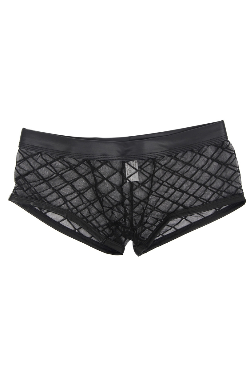 Boxer sexy pour homme, doux et confortable dans une maille transparente quadrillée, avec bandes élastiques à la taille et aux cuisses dans un style wetlook.