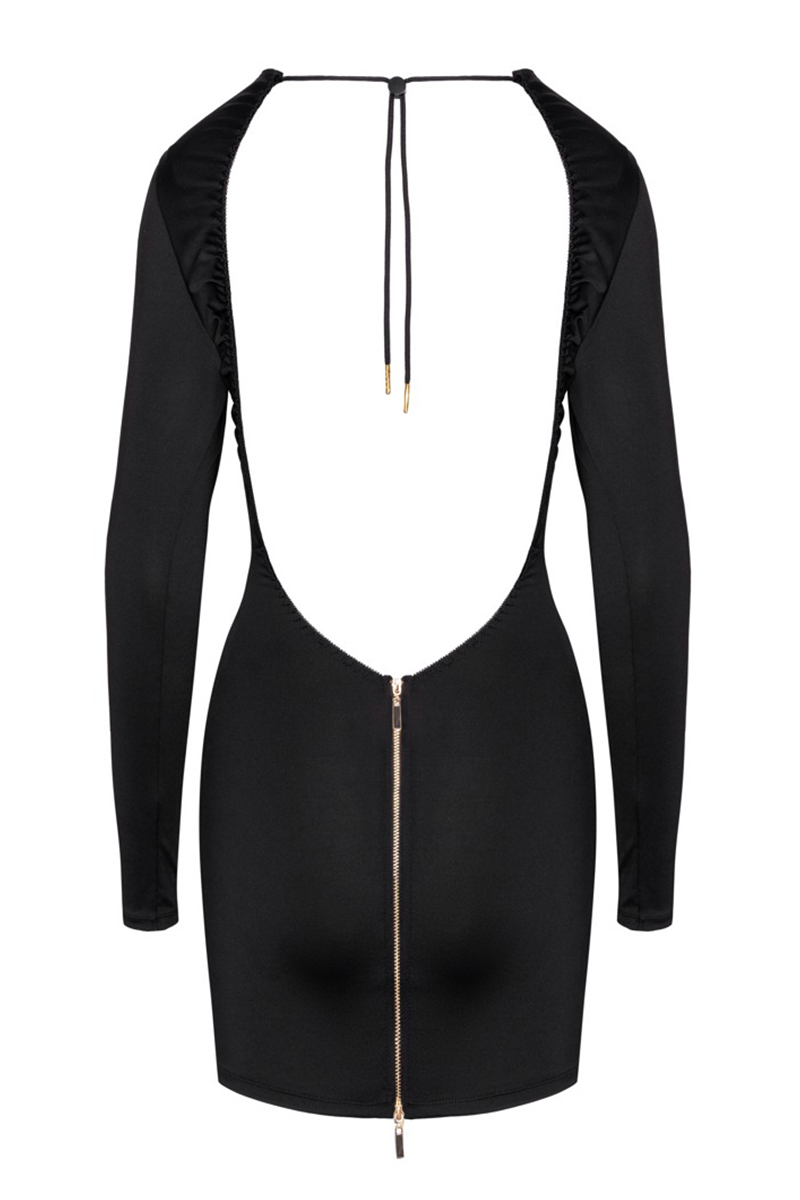 La mini-robe noire de Cottelli PARTY se caractérise par une coupe ajustée et des manches longues. Son décolleté très bas dans le dos est à couper le souffle. Juste en dessous, une fermeture éclair dorée à double sens dans la jupe facilite habillage et déshabillage. Sa fine matière stretch s'adapte au corps en douceur et assure un confort de port et de mouvement optimal.