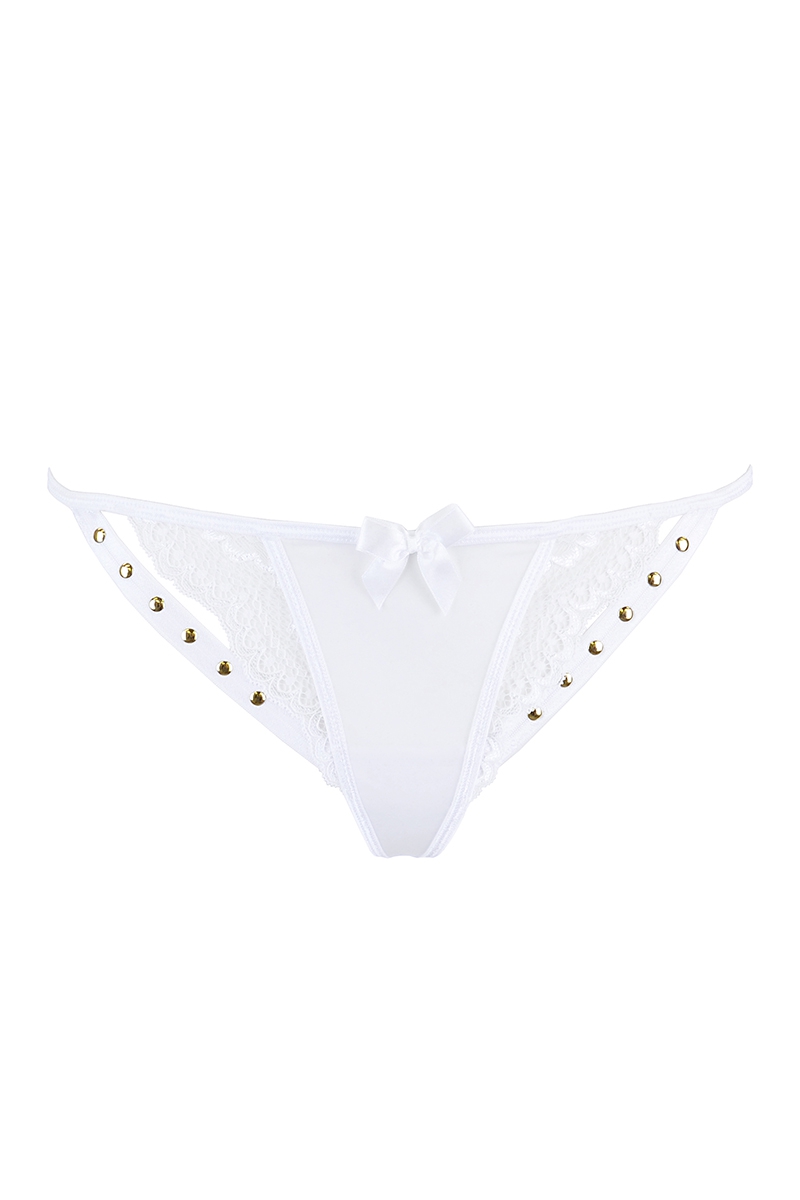Petit string blanc très sexy décoré de clous dorés sur les côtés.