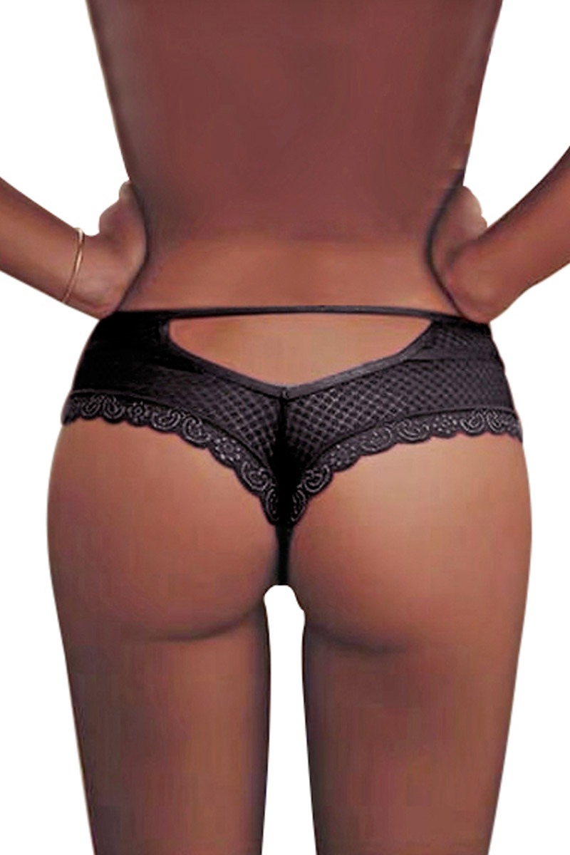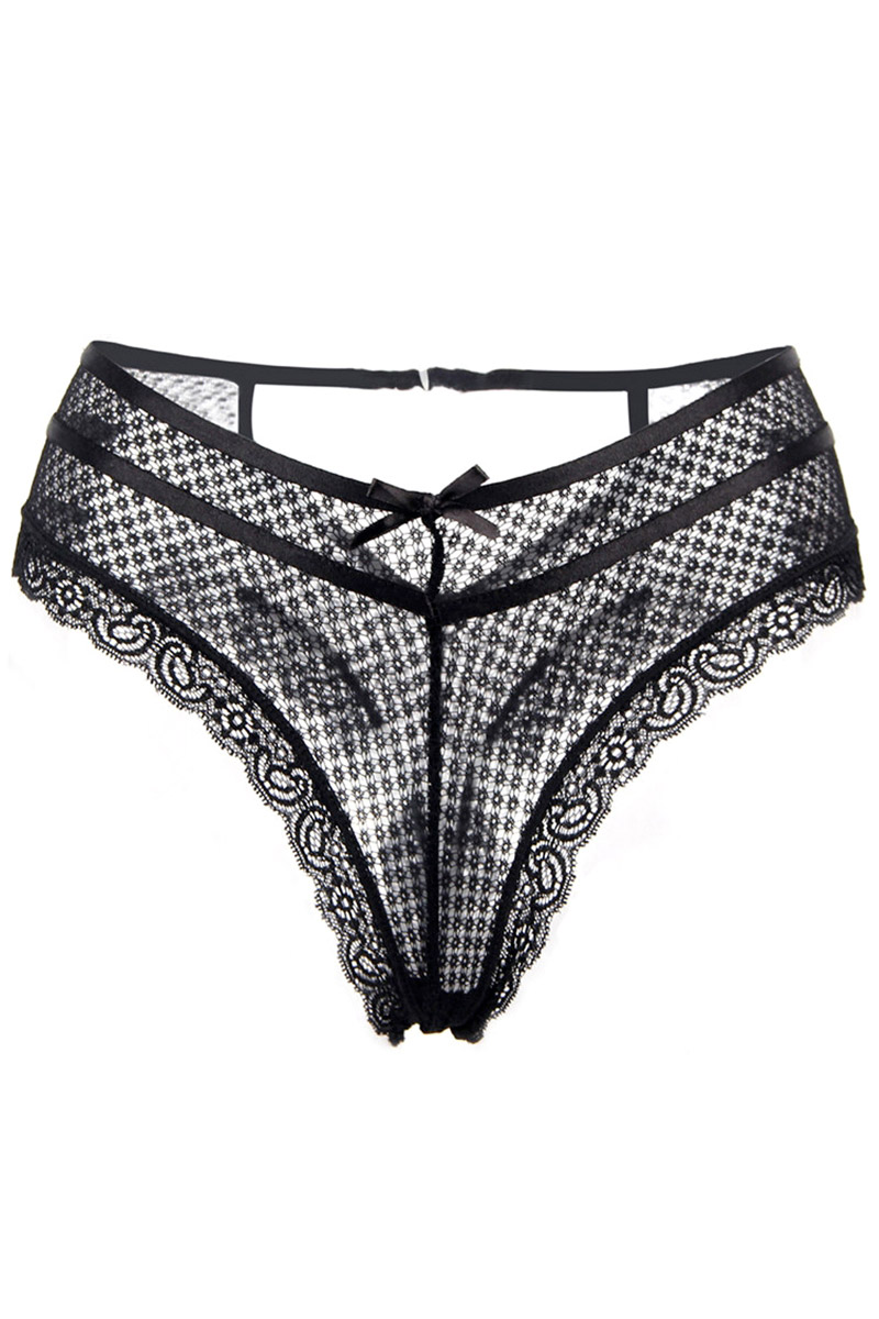 Tanga noir en dentelle ajouré sur les reins, pour porter au quotidien tout en restant au top de la séduction, par Paris Hollywood.