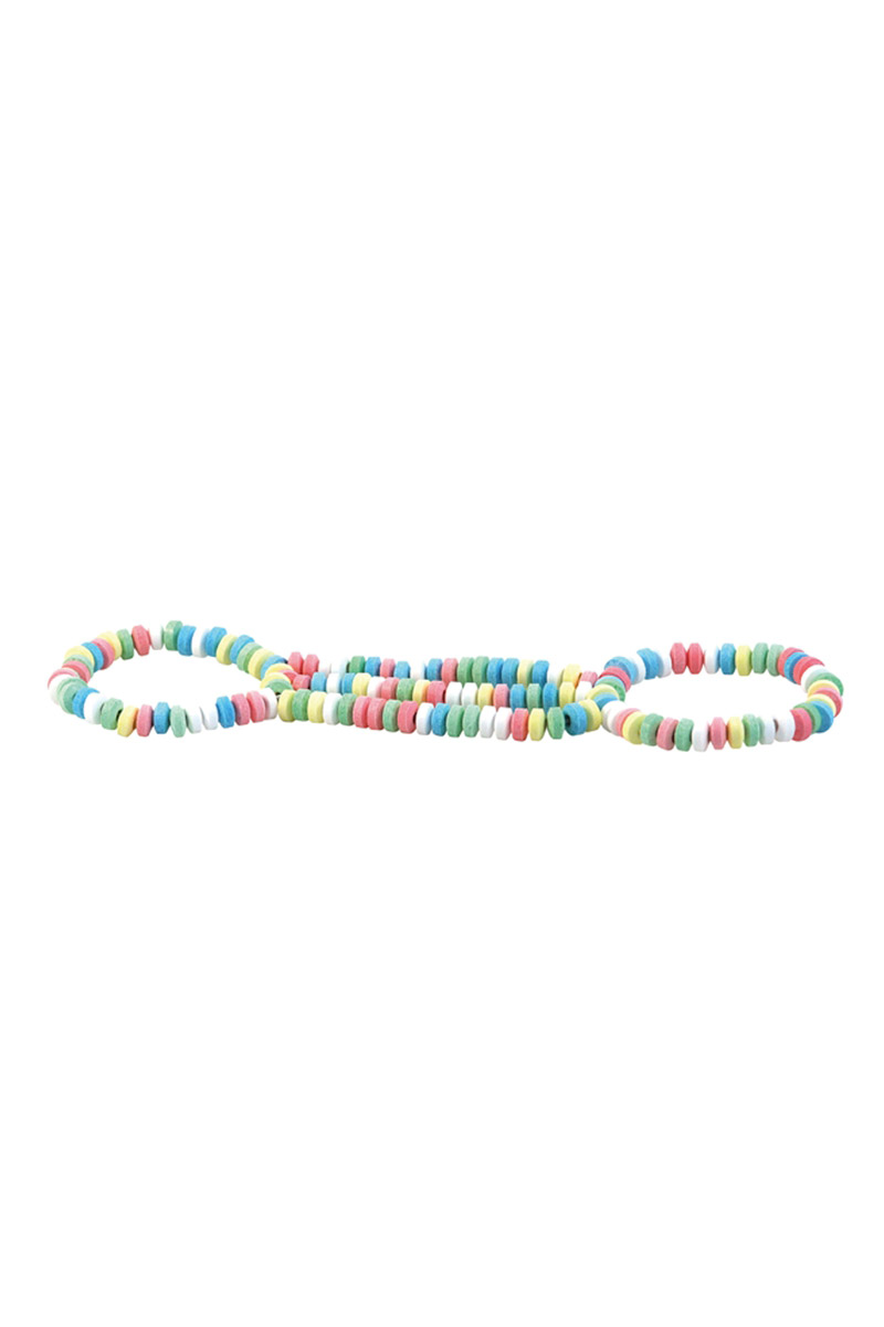 Menottes unisexe 100% ludiques en bonbons Candy multicolores, pour des jeux à la fois érotiques, fetish et gourmands.