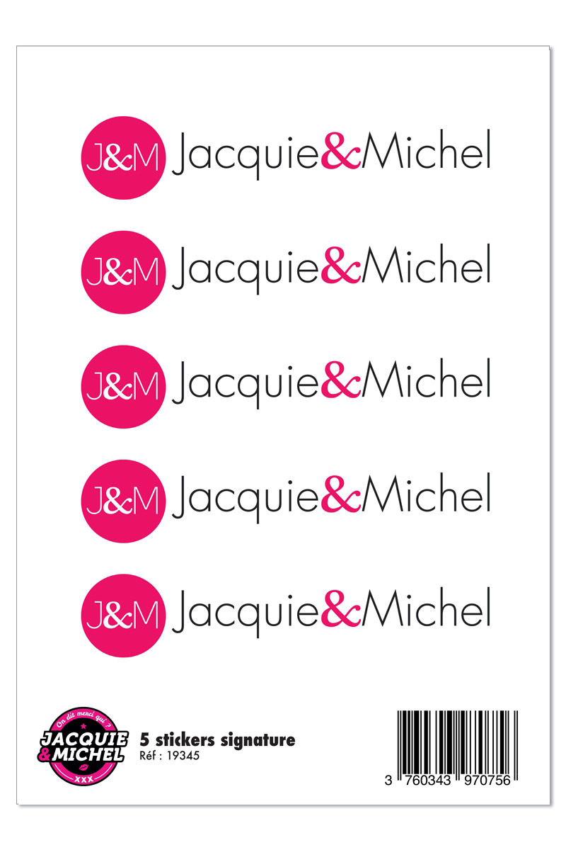 Planche de 5 autocollants avec logo signature Jacquie & Michel.