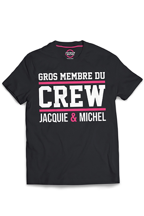 T-shirt officiel Jacquie et Michel Gros membre du CREW Jacquie & Michel, disponible en 5 tailles.