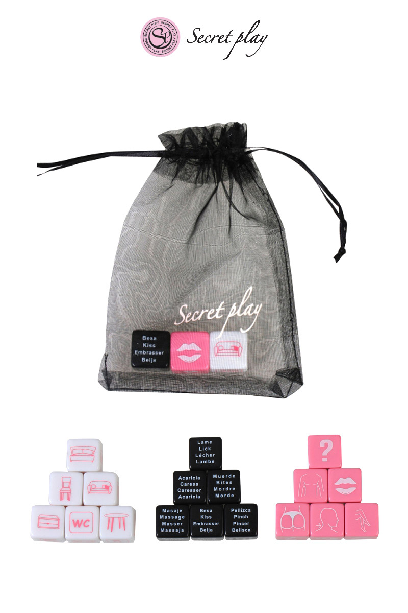 La marque espagnole Secret Play a eu la bonne idée de vous proposer un jeu qui se chargera de vous donner des ordres. Pour jouer, il suffit de faire un lancer et de lire les 3 faces visibles sur les dés. Commencez par le rose qui vous indique une partie du corps, puis le noir qui vous dit quoi faire et finissez par le blanc qui vous indique un lieu.