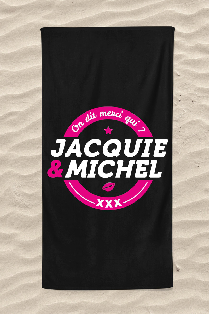 Serviette de bain on dit merci qui ? 150 x 75 cm, par Jacquie et Michel.