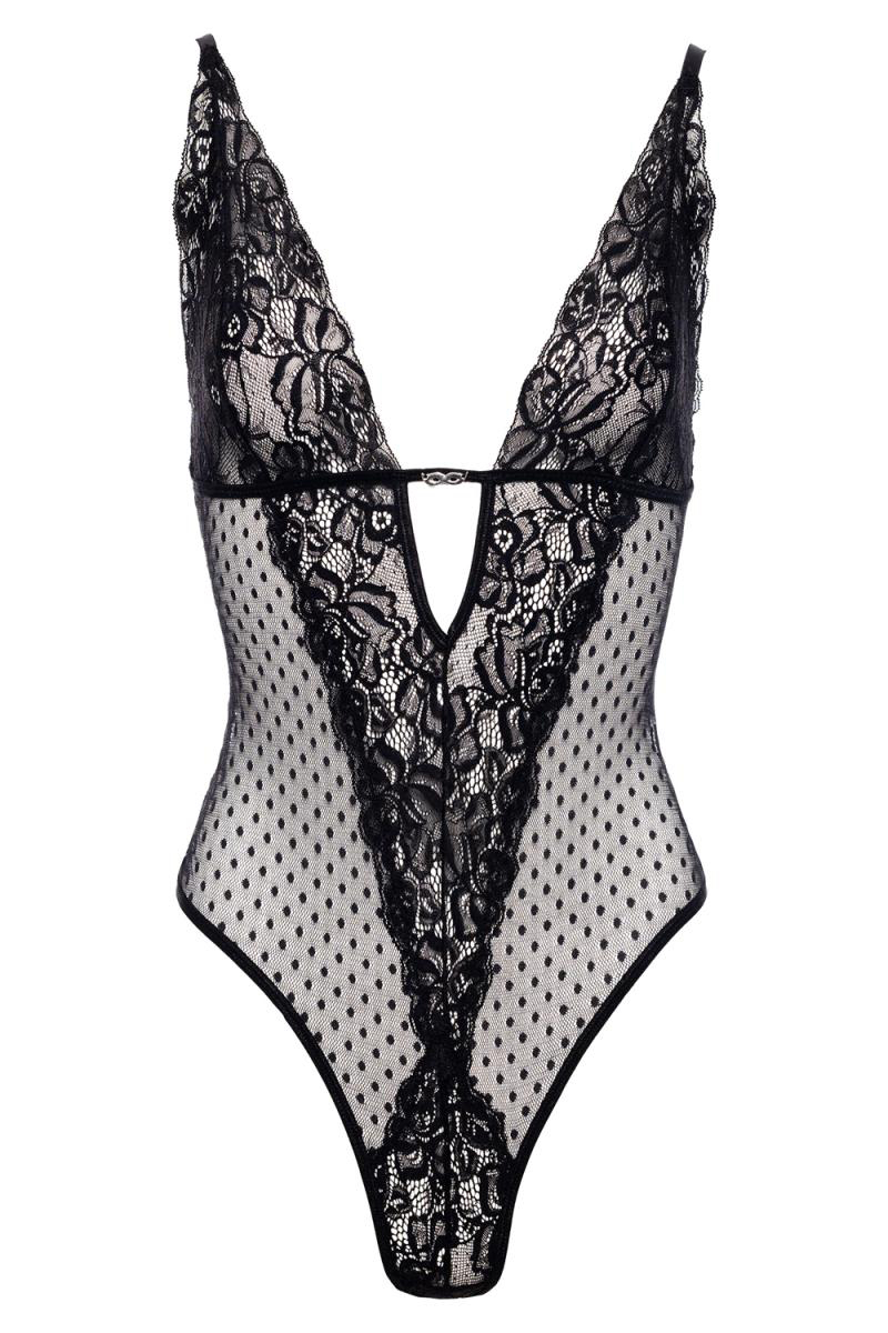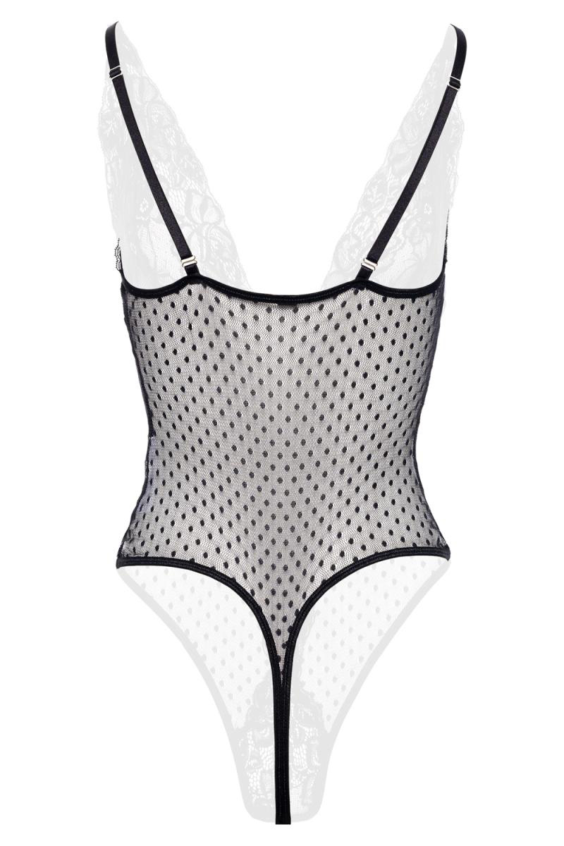 La marque Christine Leduc présente le body Dewi, un body noir en tissu extensible au design sensuel et avec ouverture à l'entrejambe.