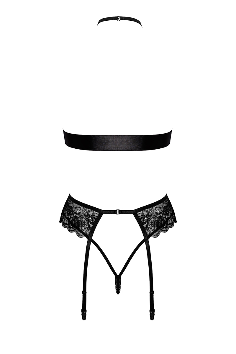 - Ensemble 4 pièces : porte-jarretelles, string, tour de cou et ruban (bas et caches tétons non fournis)