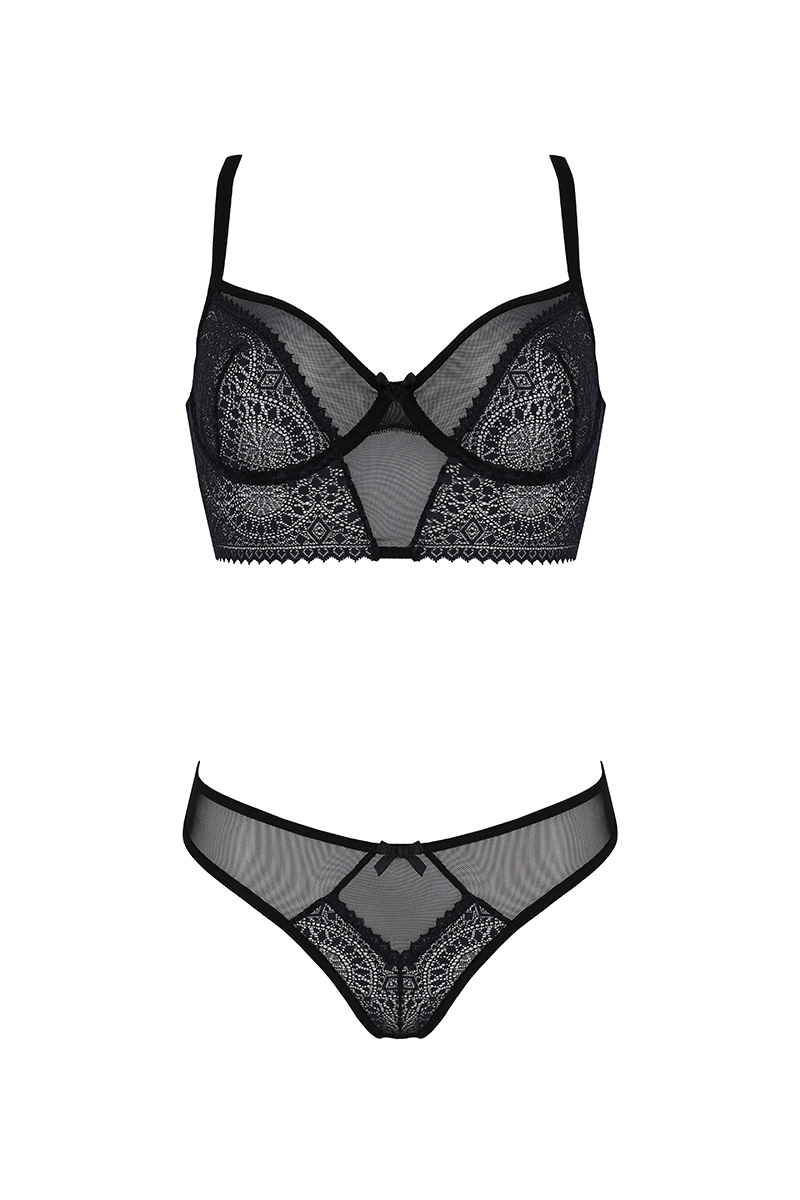 Lingerie de jour élégante et confortable, l'ensemble lingerie Drosera s'illustre par sa dentelle soignée aux motifs originaux, et son tulle transparent finement ajouré.