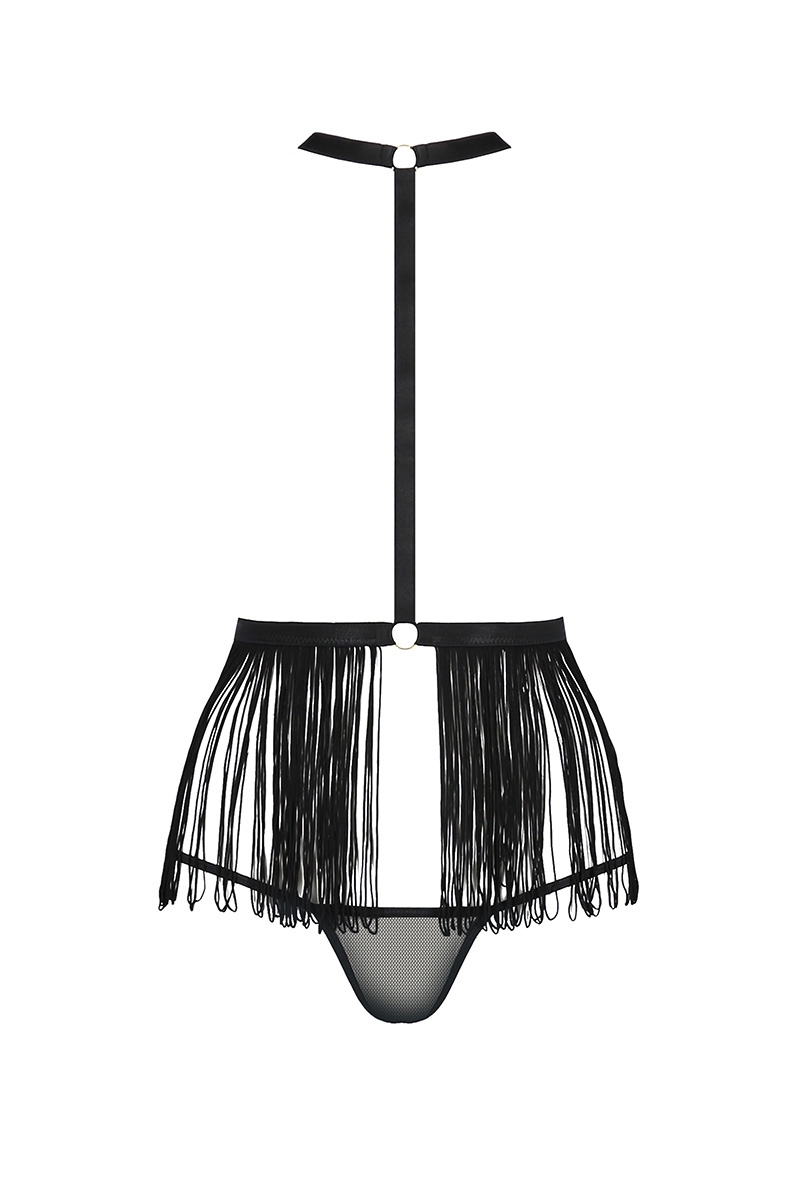 Ensemble jupe à franges et string en tulle de la marque Passion.