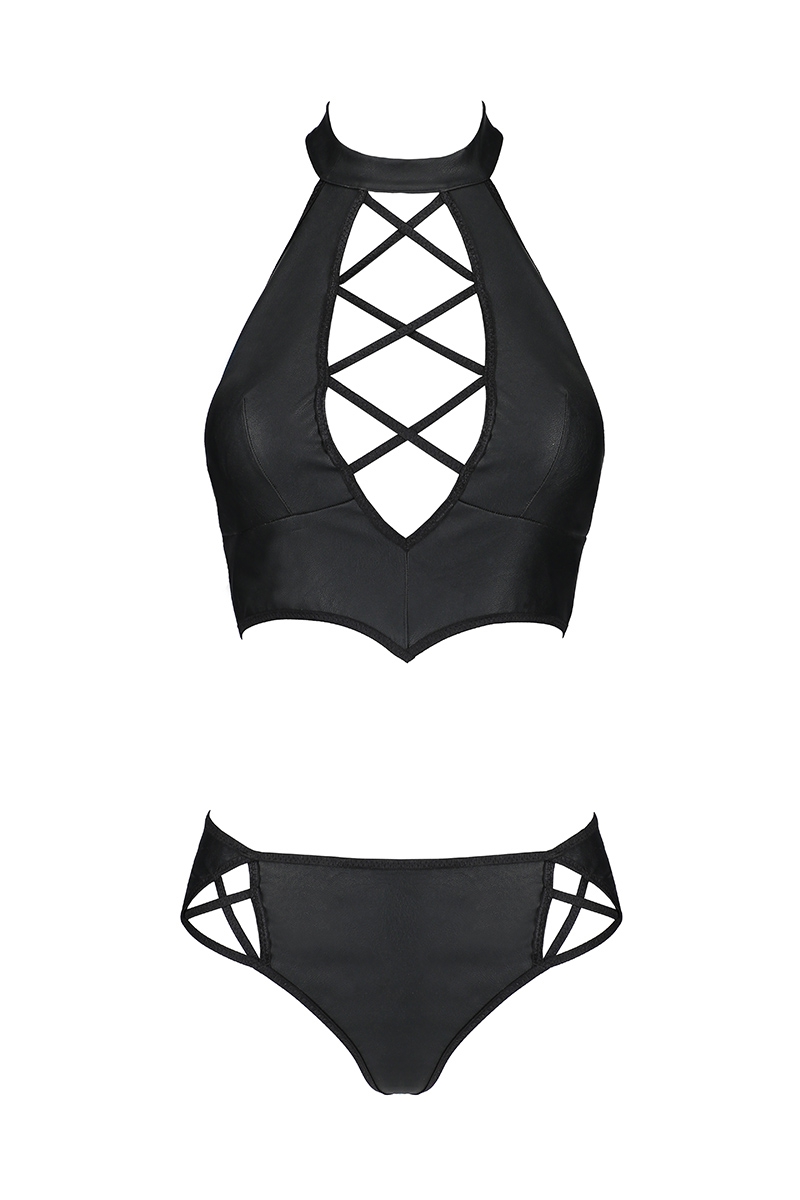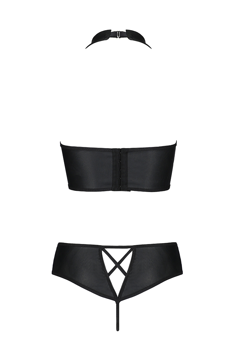 Ensemble 2 pièces : bustier dos nu et string tanga en faux cuir