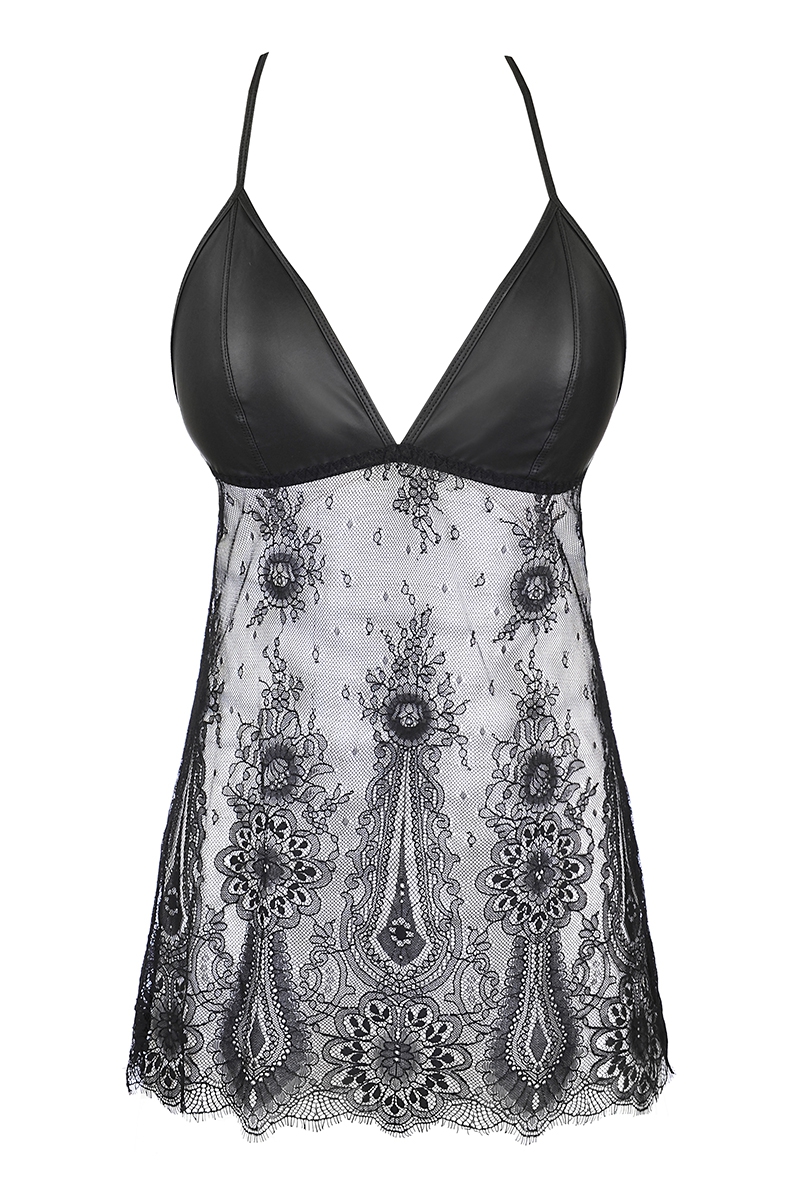 Nuisette dentelle et wetlook noire V-9789