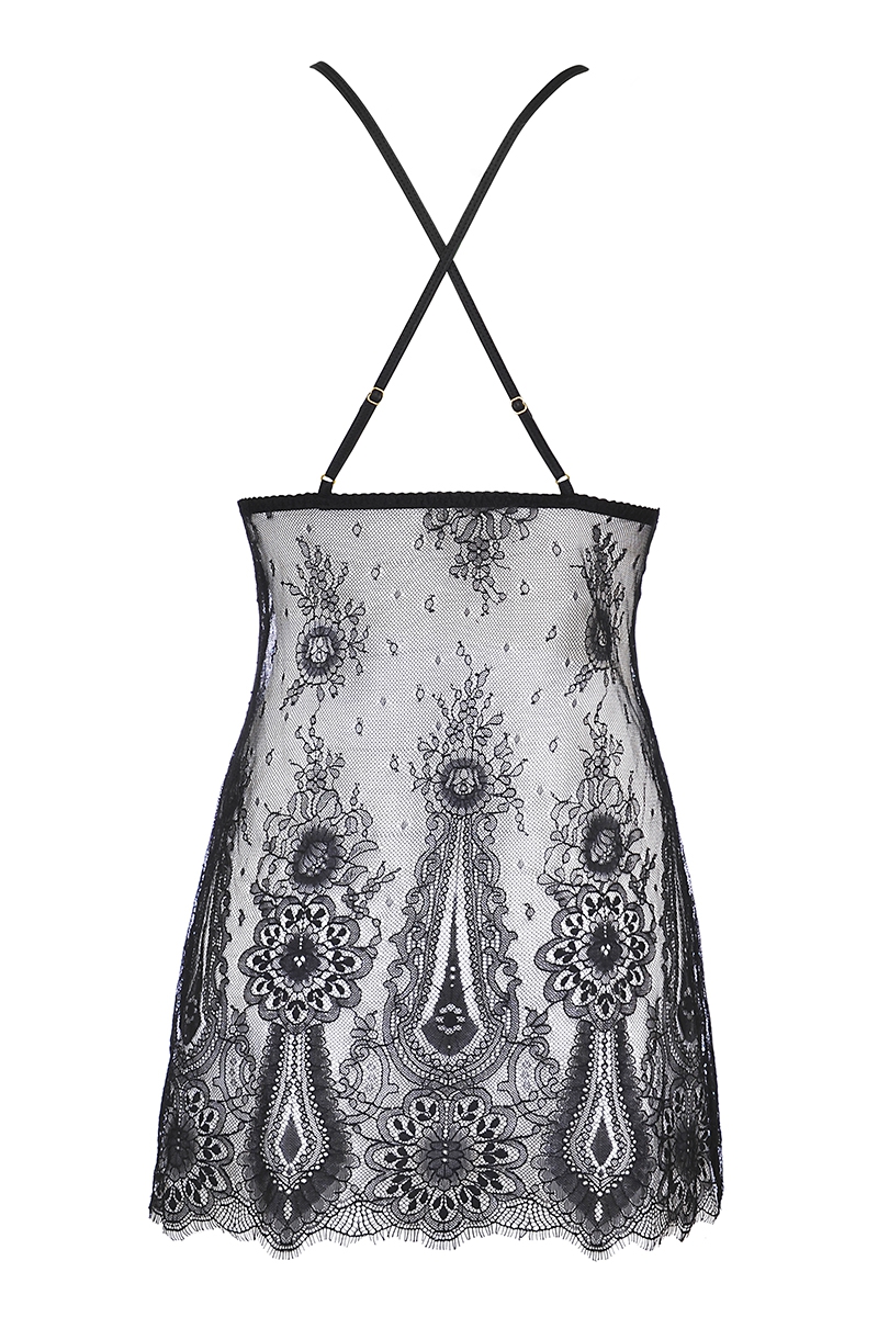 Nuisette dentelle et wetlook noire V-9789 Axami