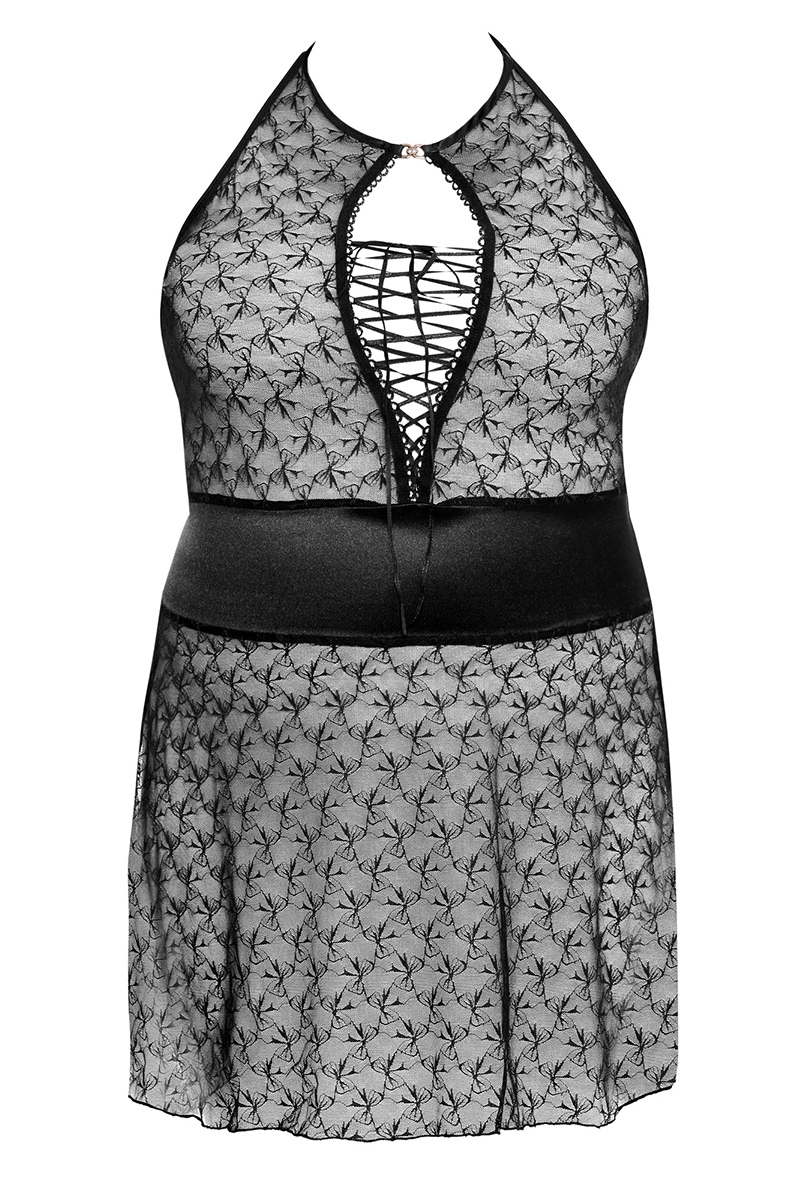 La nuisette Rhiannon est une superbe nuisette en dentelle au motif original de noeuds qui créent une trame ultra sexy.