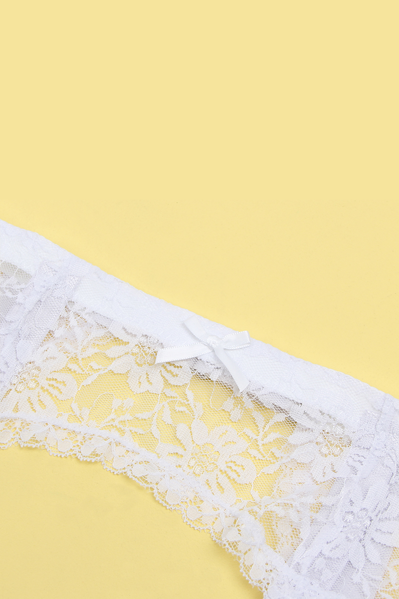 Ensemble porte-jarretelles et string en dentelle résille blanche, conçu pour sublimer la silhouette avec élégance et sensualité.