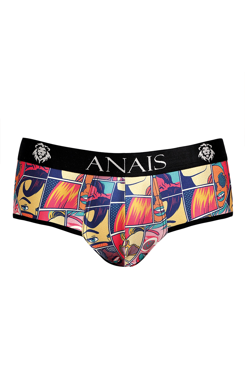 Le jock bikini Comics. La large ceinture élastique noire décorée de têtes de lion et du logo de la marque maintient parfaitement ce jock bikini en place pour offrir un confort parfait tout au long de la journée. Ce jock bikini sexy est fabriqué en tissu imprimé de visages inspirés des comics et du pop art.