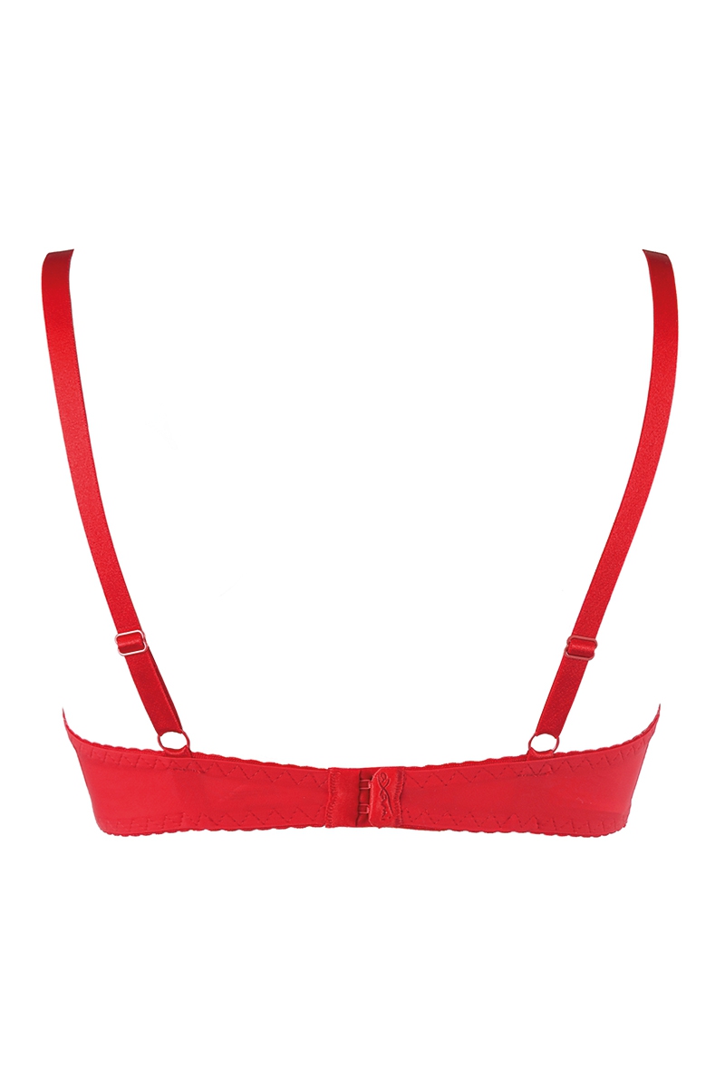 Soutien-gorge push-up en jersey rouge éclatant, il galbe vers le haut les rondeurs de la poitrine en beauté.