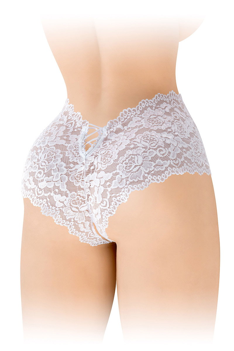 Joli boxer en dentelle ouvert sur le devant et le derrière. Laçage raffiné à l'arrière.