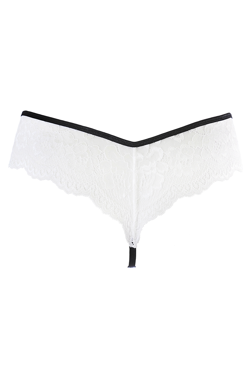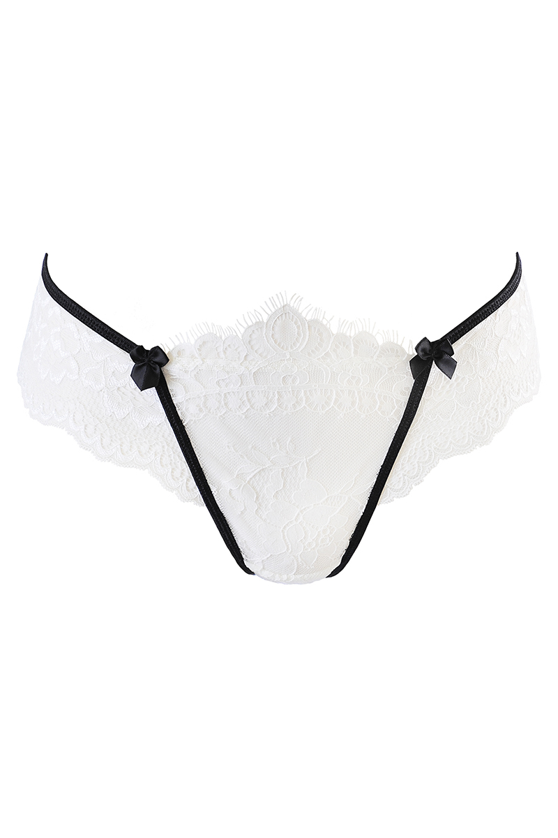 String sensuel Axami, composition de deux dentelles blanches soulignée d'un fin élastique noir.