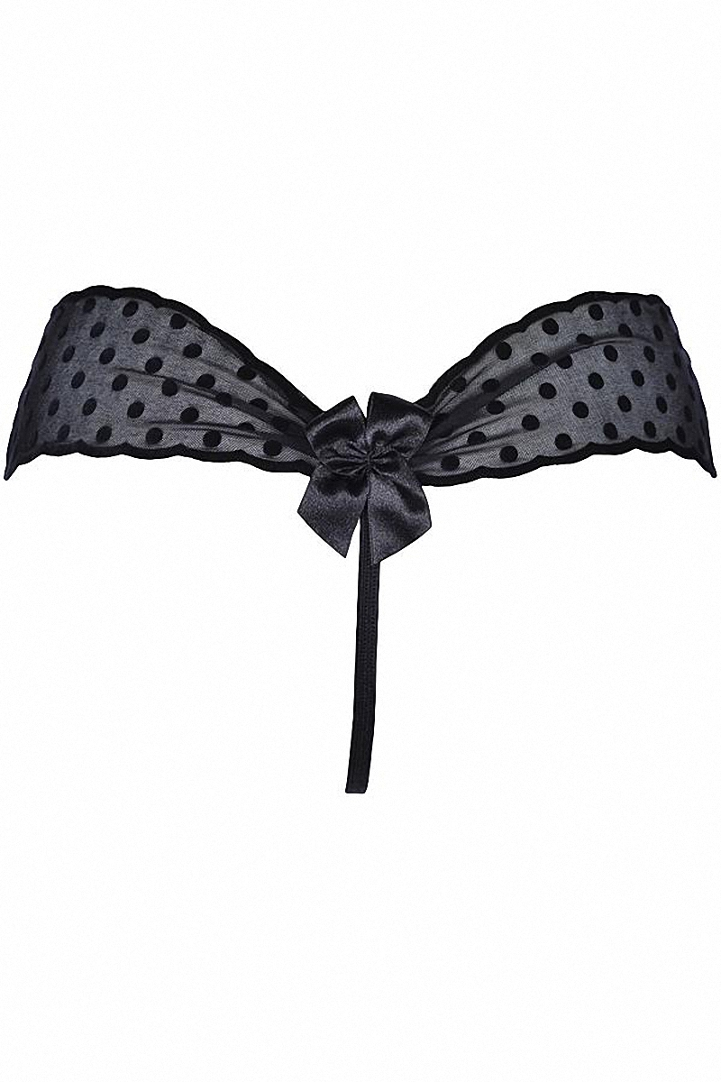 Charmant et élégant, le string possède une ceinture ajourée devant, et en tulle noir à pois dans le dos. Des noeuds en satin couronnent le centre de la ceinture devant et derrière.