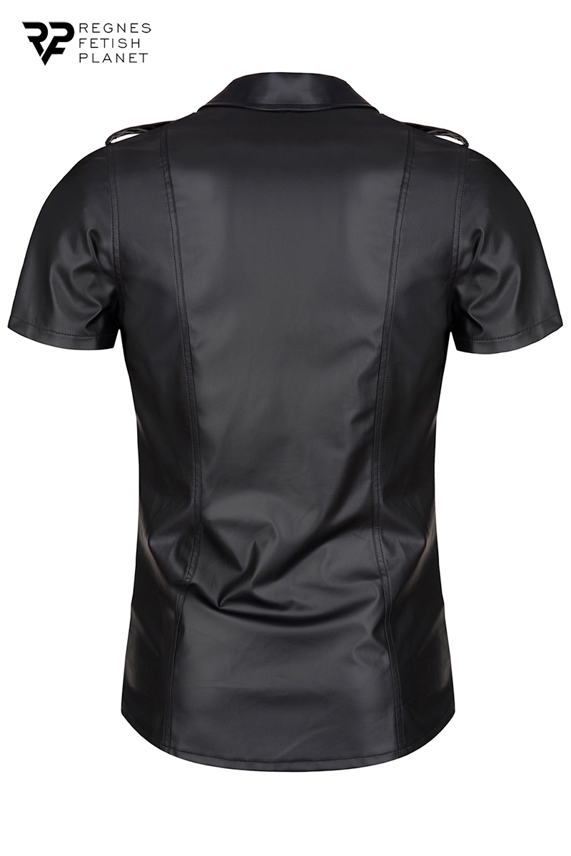 Chemise fabriquée en wetlook noir élastique en Europe par la marque Regnes Fetish. Ce modèle est un parfait alliage de coupe classique, voir militaire tout en intégrant des détails plus modernes et à la mode. Ce modèle a été confectionné pour plaire aux amateurs de fetish qui reconnaîtront quelques détails imaginés pour cette communauté.