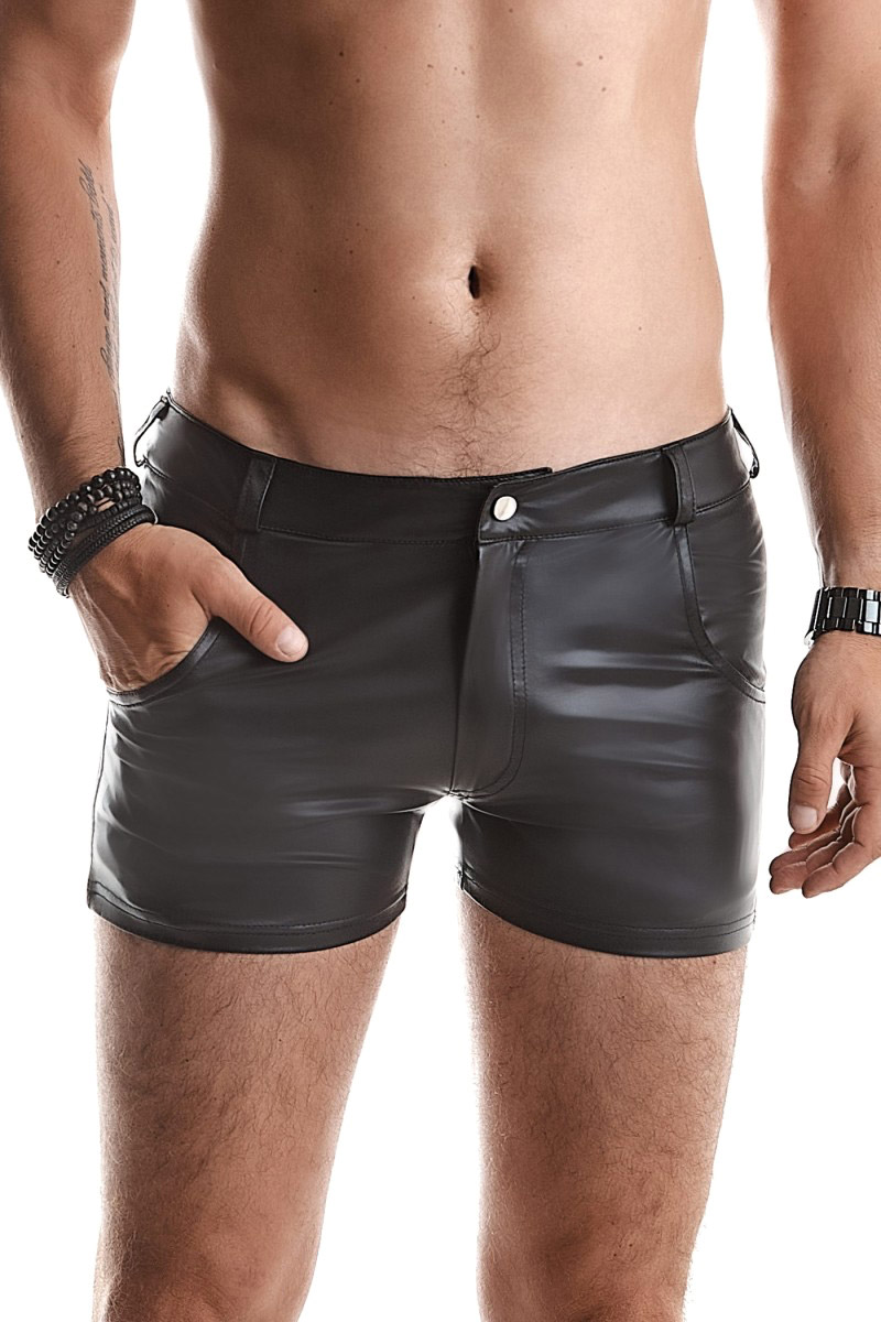 Short court et sensuel fabriqué en tissu effet wetlook extensible par la marque Européenne Regnes Fetish Lingerie.