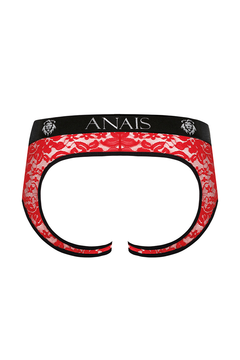 Le jock bikini Brave. La large ceinture élastique noire décorée de têtes de lion et du logo de la marque maintient parfaitement ce jock bikini en place pour offrir un confort parfait tout au long de la journée. Ce jock bikini sexy est fabriqué en dentelle rouge au motif floral qui crée des zones de transparence.