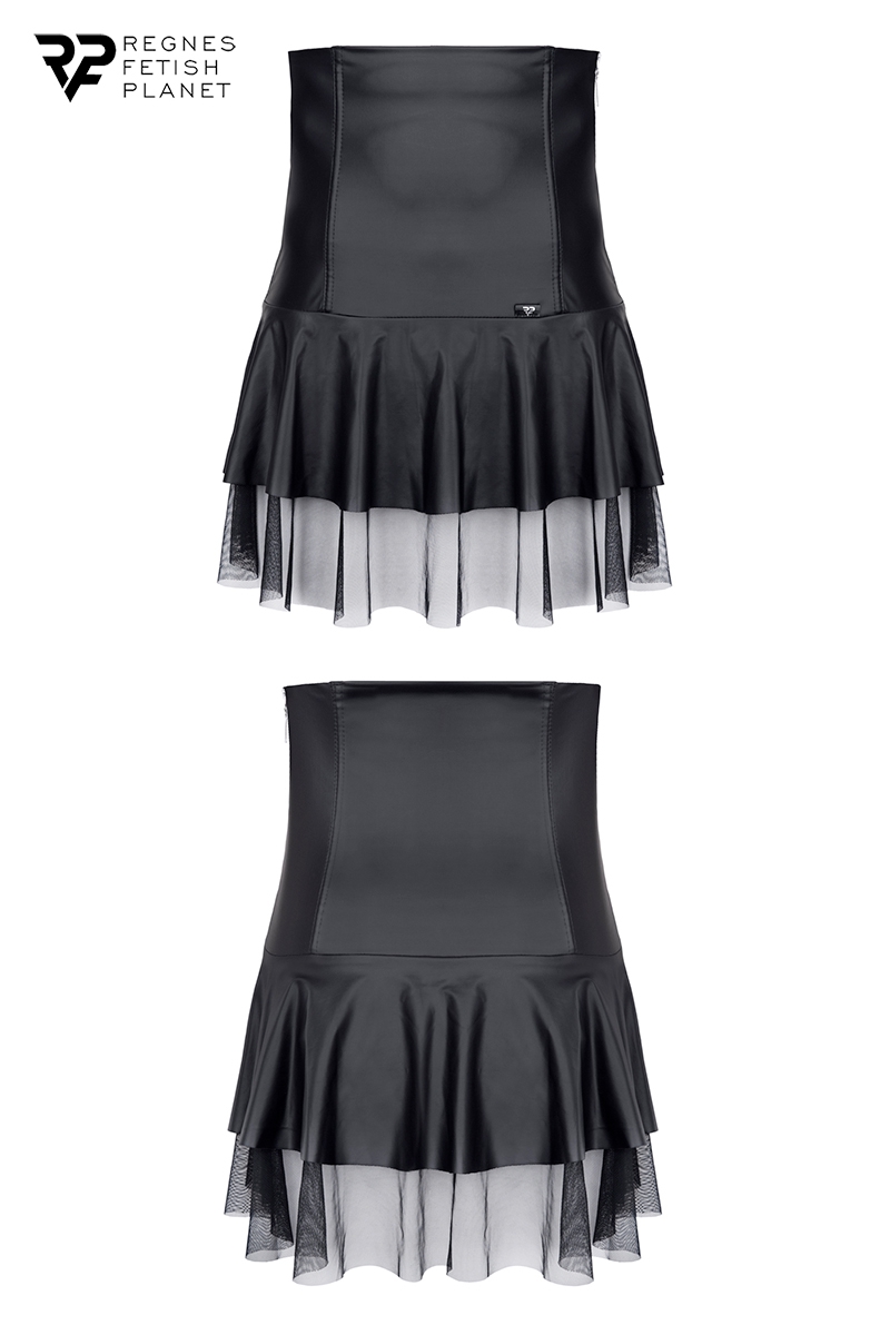 Jupe pour homme en tissu wetlook extensible pour s'adapter parfaitement à la morphologie de celui qui la porte. Fabriquée en Europe par Regnes Fetish Planet. Ce modèle est issu de la collection Cross Dresser.